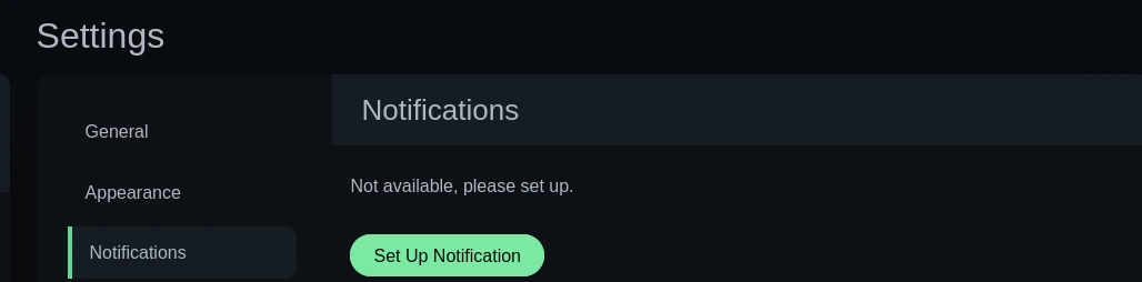 De retour dans Uptime Kuma, je clique sur mon profil en haut à droite, puis je me rends dans les "Settings". On y trouve la catégorie "Notifications" qui permet de configurer les alertes.